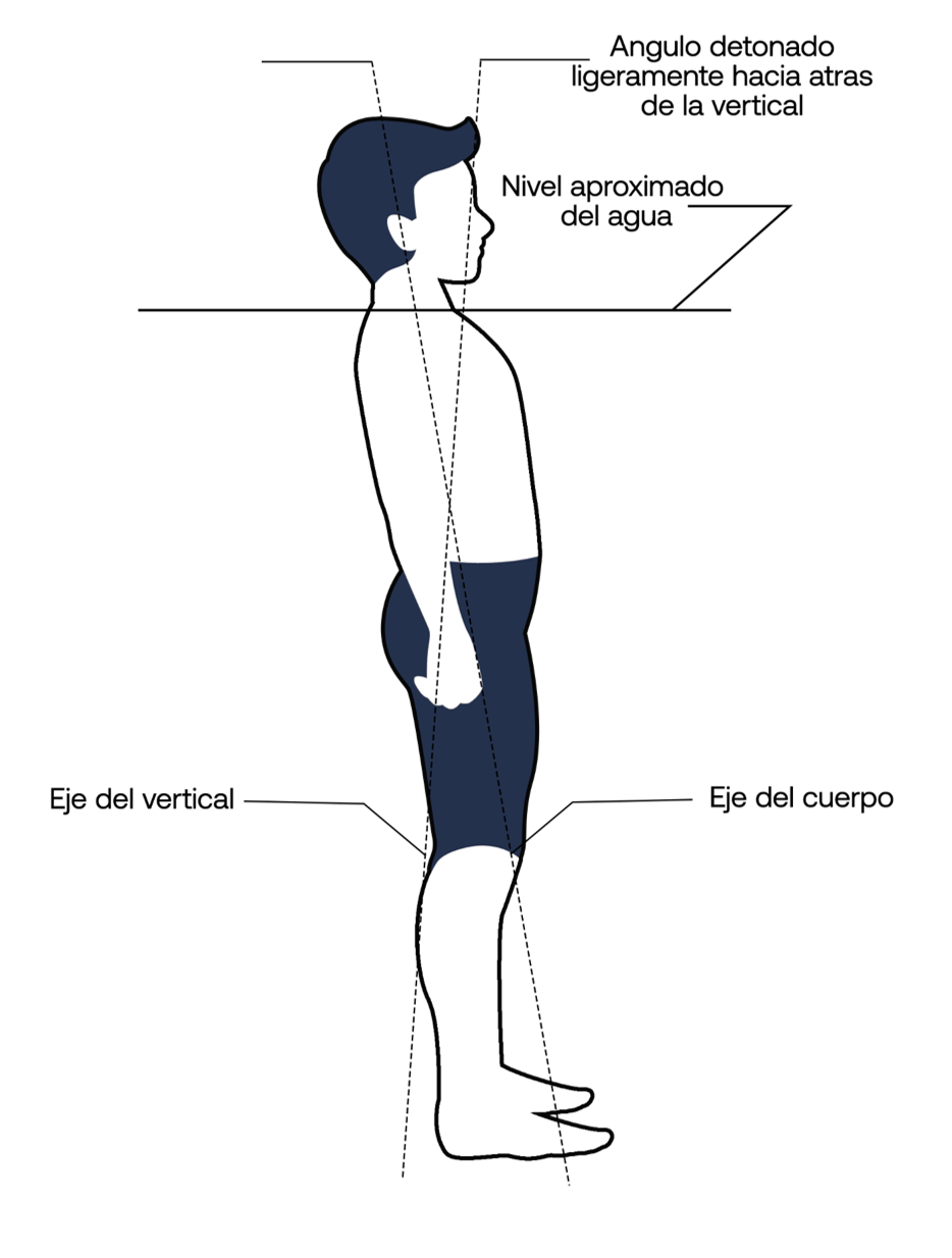 Se colocan a 12 personas con chalecos salvavidas en una posición horizontal en el agua, boca abajo pero con la cabeza levantada de modo que la boca quede fuera del agua; con ayuda de otra persona, se sostendrán los pies del sujeto, separados según el ancho de sus hombros y los brazos al costado del cuerpo, con los talones justo por debajo de la superficie del agua; se deberá pedir al sujeto que se relaje gradual y completamente a fin de que su cuerpo adopte una postura de flotación natural.